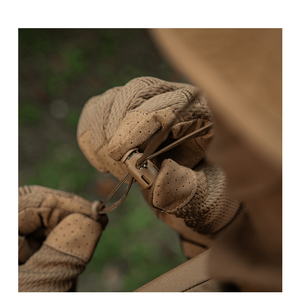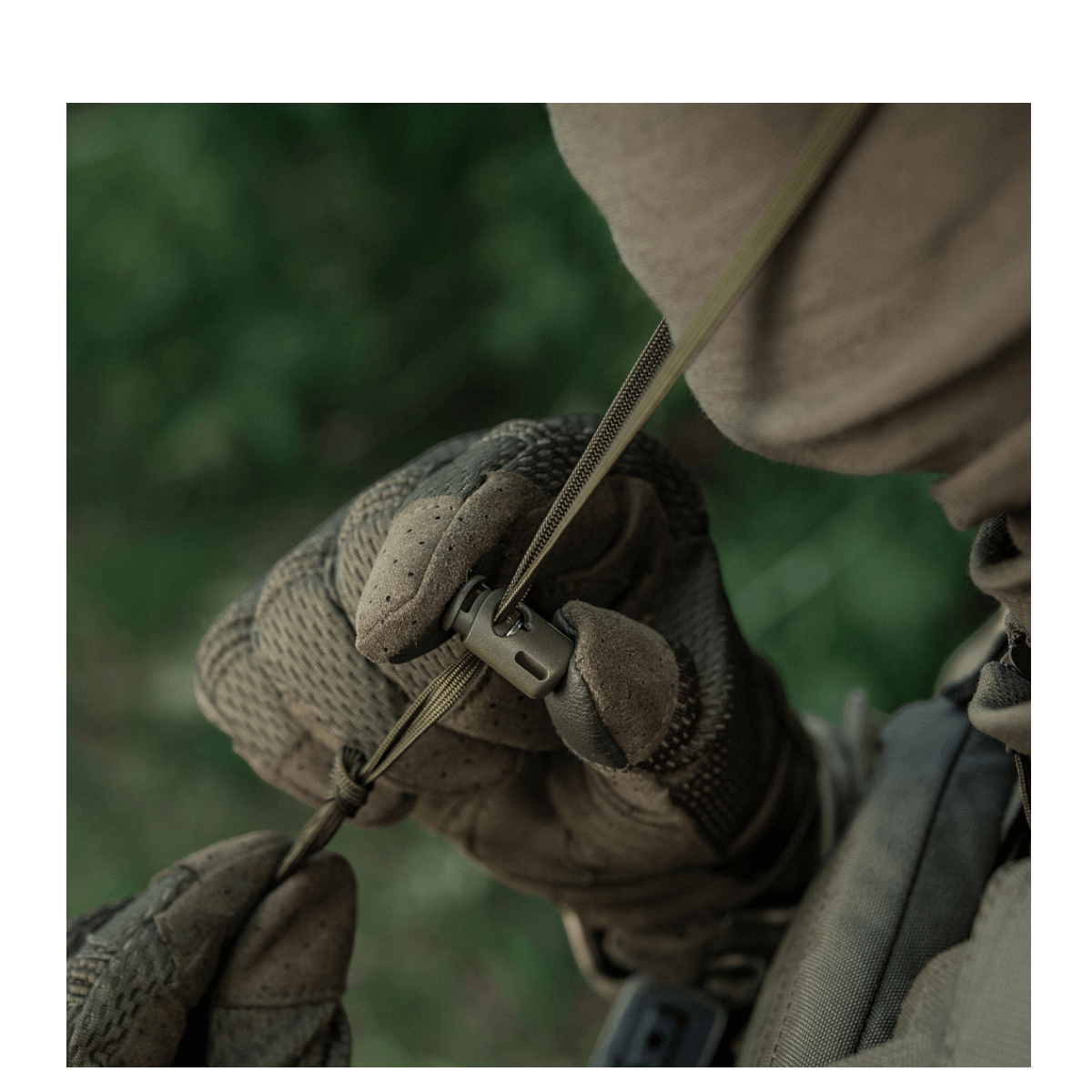 Funktioner: Kort semi-rigid skygge, MOLLE-interface til ekstra kamuflage, speciel snor mod vind