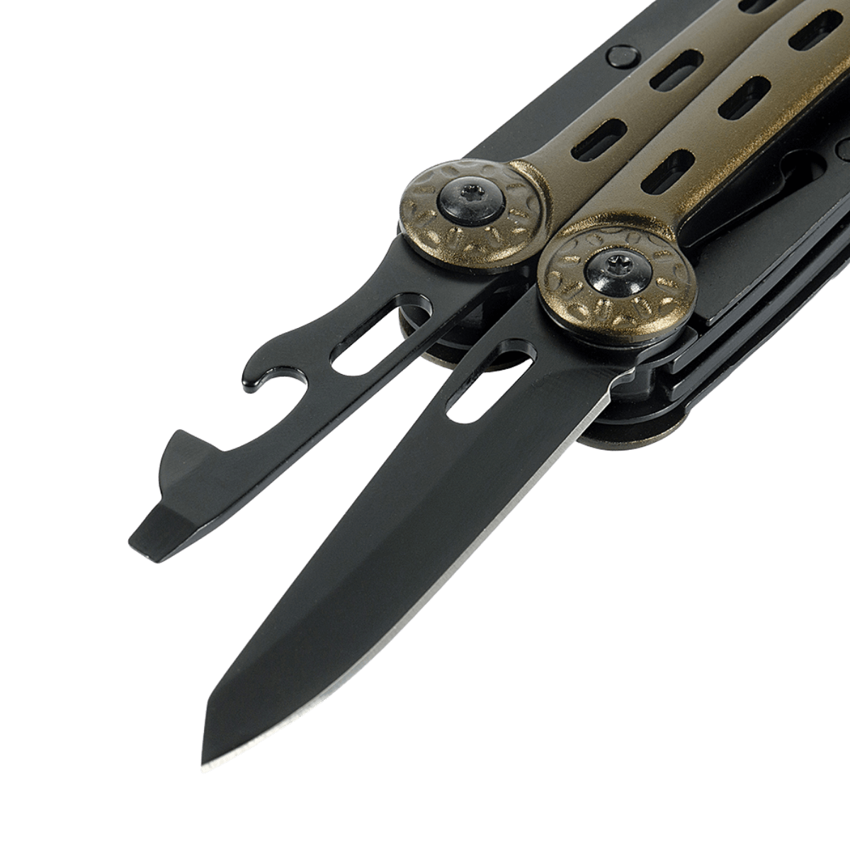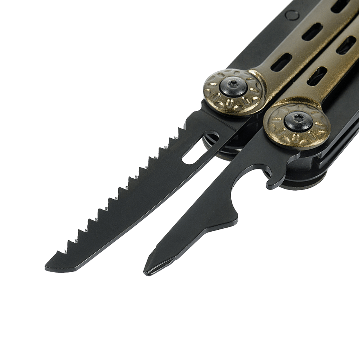 Multiværktøjet er lavet af 402 rustfrit stål, hvilket sikrer maksimal holdbarhed, selv ved aktiv brug i felten.