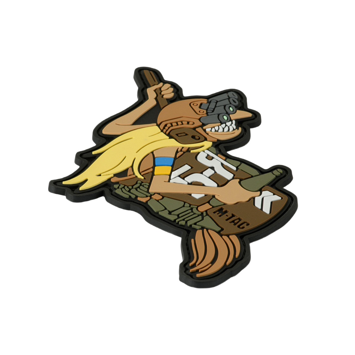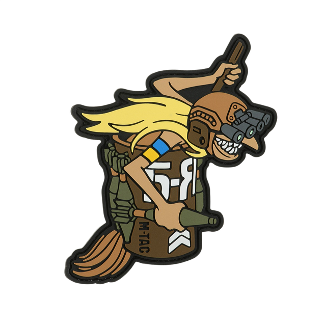 M‑Tac Patch Baba-Yaga Vertical er en original PVC-patch, inspireret af de ukrainske UAV-operatører og deres natdrone "Baba Yaga". Patchen viser juniorsergent Baba Yaga med GPNVG-18 natkikkert og PG-7M granater, klar til at udføre præcise angreb under nattens dække.