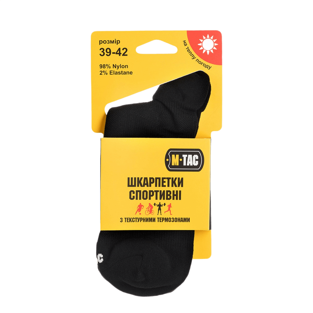 M-Tac Sportsokker er designet til løb og andre sports- og fritidsaktiviteter i varmt vejr. De tynde elastiske manchetter sidder tæt om anklen uden at klemme.