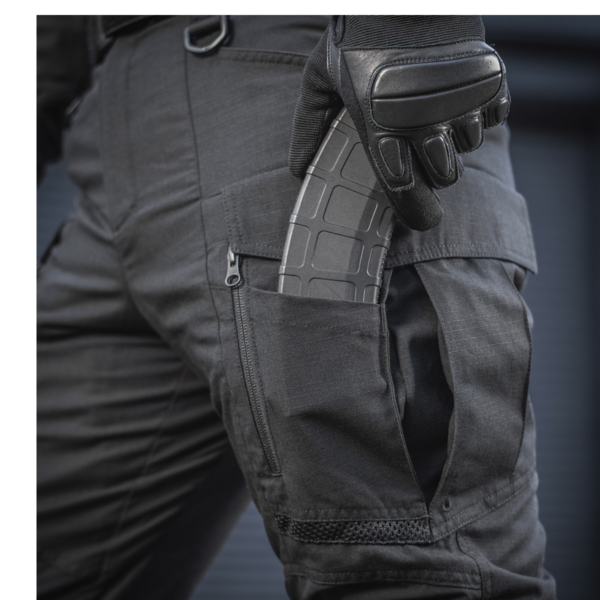 Bukserne er udstyret med et stort antal lommer, både praktiske og specialiserede: der er i alt ti lommer. Standard sidelommer er forstærket i bunden til fastgørelse af kniv- eller lommelygteclips. Baglommer med slids lukker med lynlås. Cargo-lommen med asymmetrisk klap er udstyret med en ekstra patch-lomme, som kan rumme et magasin fra en M4 eller AK. Cargo-lommen i sig selv er rummelig og har to folder, hvilket gør det muligt at udvide dens størrelse til transport af større genstande. Derudover er cargo-lommen udstyret med en ekstra lynlåsåbning, som giver adgang til indholdet, mens man sidder. Bunden af cargo-lommerne har netmateriale for ekstra ventilation.