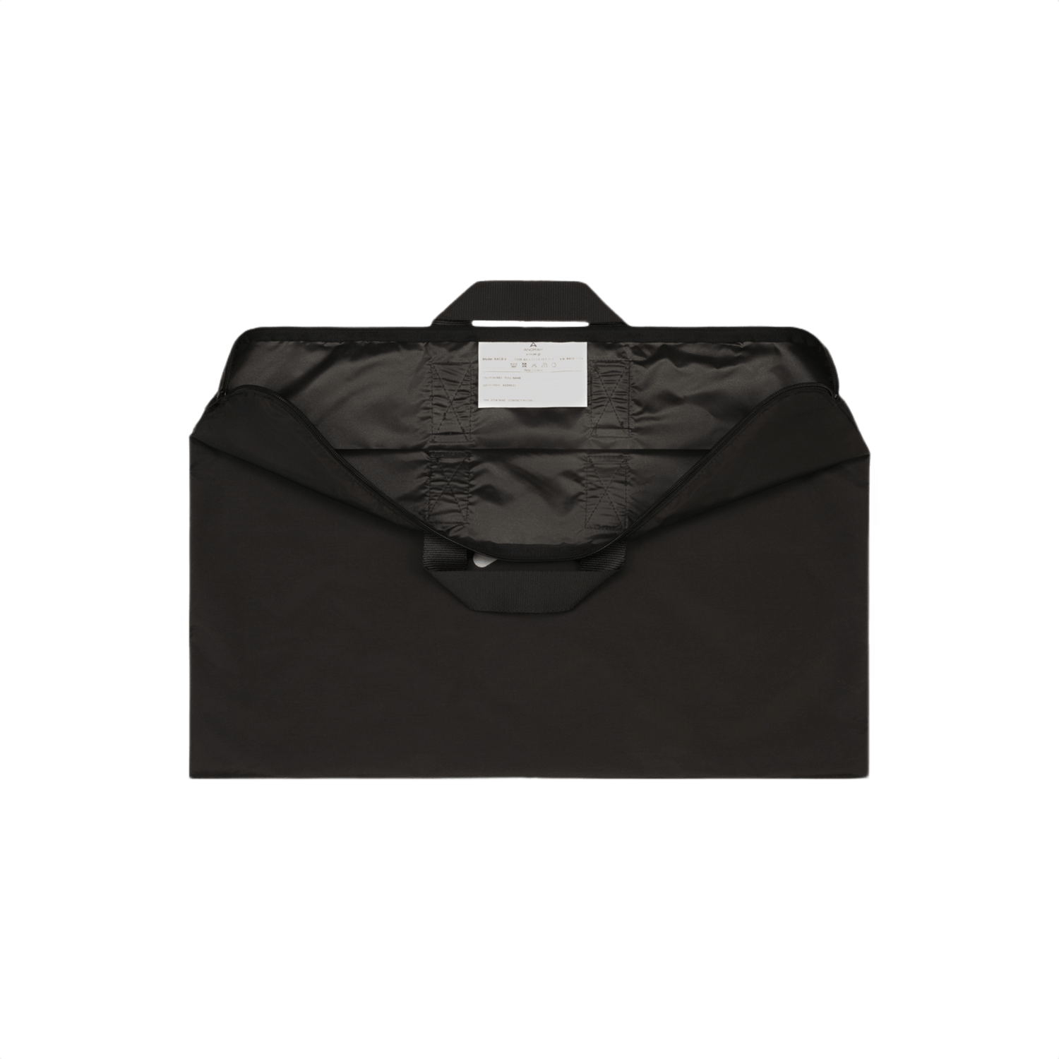 "BACB V" bæretaske er fremstillet af let, slidstærkt og vandtæt nylon (PA)-stof og sikrer maksimal beskyttelse mod fugt og sollys. Den har en stor åbning for nem indsættelse af mappen, to 4 cm brede håndtag i polyesterbånd for sikker transport samt en holdbar plastlynlås til lukning. Derudover er den udstyret med en påsyet mærkat til ejeroplysninger.