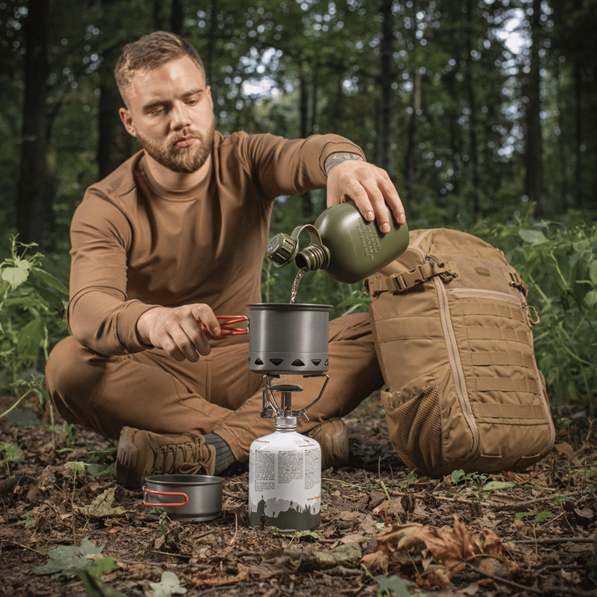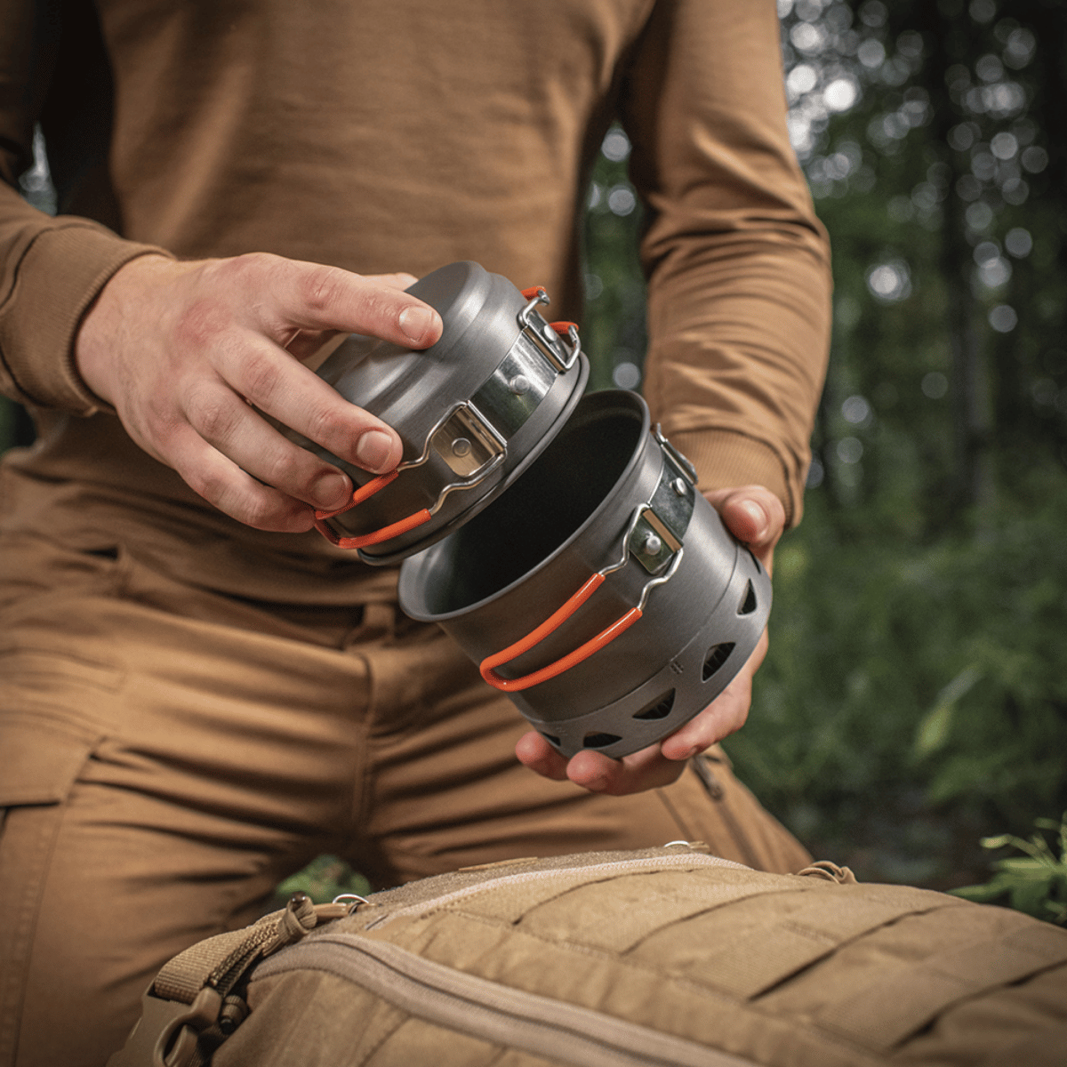 M-Tac Individuelt Kogesæt til Brænder er et praktisk og kompakt sæt designet til friluftsliv, camping, jagt og fiskeri. Det er fremstillet af anodiseret aluminium, som er både let, holdbart og modstandsdygtigt over for deformation. Materialet sikrer hurtig opvarmning og lav vægt, hvilket gør det perfekt til brug på tur med begrænset oppakning.