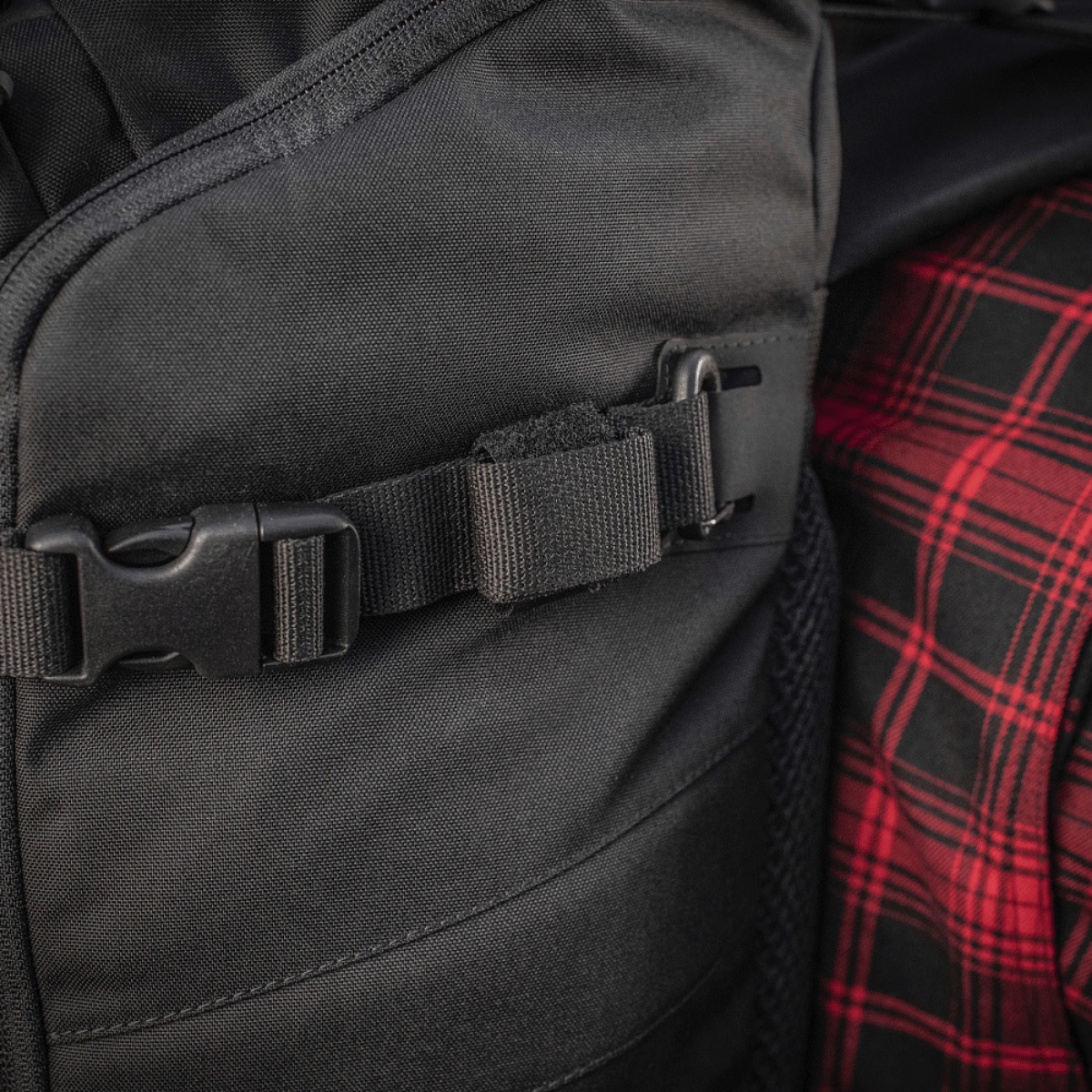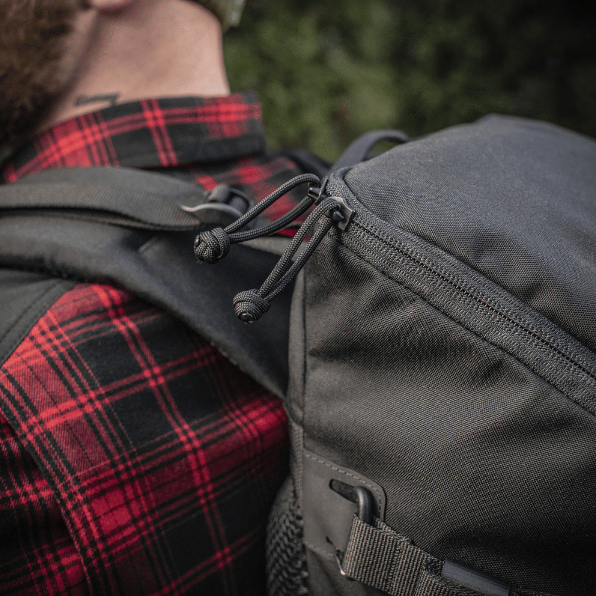 M-Tac Gen.II Elite Small Backpack åbnes som en kuffert, hvilket gør pakning nem og praktisk. Siderne har mesh-lommer med elastiske snore samt sidelommer med elastikremme dækket af klapper, som holder indholdet sikkert.