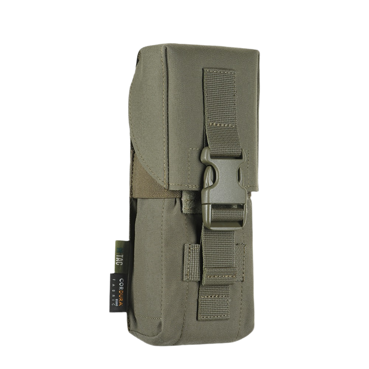 Tasken er fremstillet af slidstærkt Cordura 500D, som modstår høj belastning og slid. Flapdæksel og MOLLE-interface er lavet af Cordura Squadron med laser-cut teknologi, og elastiske nylon-sidevægge sikrer nem adgang til magasinerne. Den kompakte størrelse gør det muligt at montere flere tasker på bælte, vest eller body armor uden at optage for meget plads.