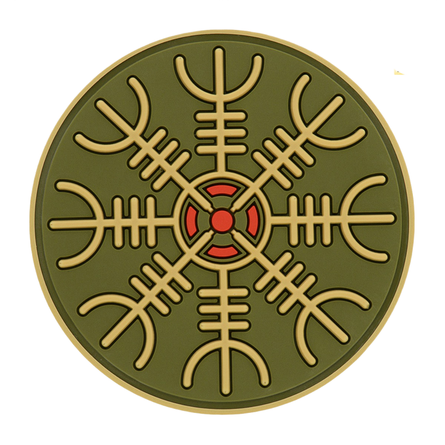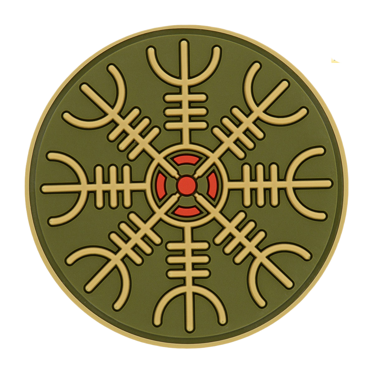 M-Tac Patch Egeshjelm 3D PVC med Velcro. Dette patch viser det ikoniske vikingesymbol, også kendt som Helm of Terror, som skræmmer fjender og beskytter ejeren.